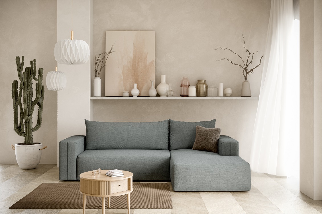 Automatyczny system rozkładania automat DL sprawia, że przekształcenie narożnika w dodatkowe miejsce do spania jest szybkie i wygodne. Tył mebla tapicerowany pozwala na dowolne umieszczenie go w pomieszczeniu, nie tylko przy ścianie.