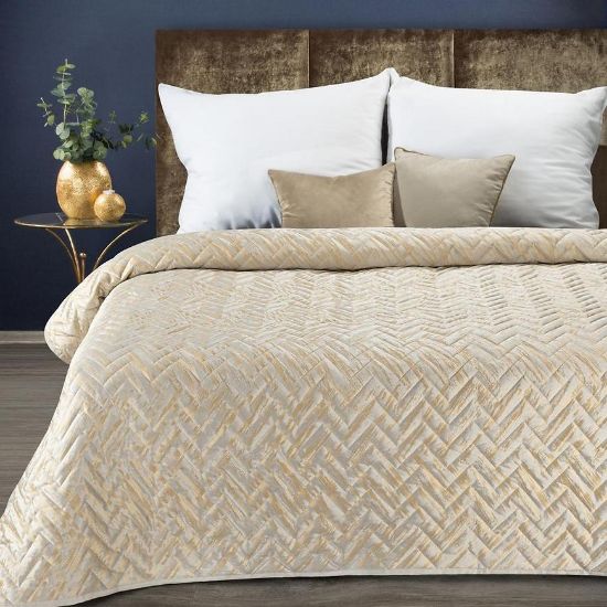 Narzuta, która wniesie do Twojego wnętrza wyjątkowy urok i elegancję - to narzuta welwetowa przeszywana z subtelnym złotym przetarciem. Jej rozmiary, 210 cm długości i 170 cm szerokości, sprawiają, że jest idealnym dodatkiem do każdej sypialni, salonu lub innego pomieszczenia, które chcesz ozdobić.
