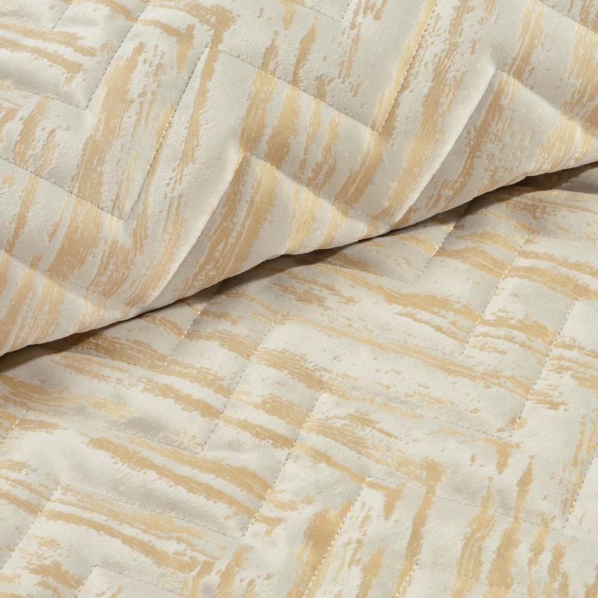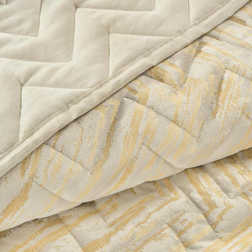 Narzuta została wykonana z najwyższej jakości poliestru (100%), co zapewnia jej trwałość i odporność na codzienne użytkowanie. Subtelne złote przetarcie nadaje jej wyjątkowej elegancji i luksusowego wyglądu. Gramatura narzuty wynosząca 210+75+120 GSM sprawia, że jest ona miękka w dotyku i przyjemna do użytku.