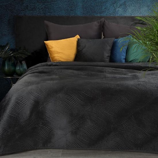Narzuta o wymiarach - 220 cm szerokości i 240 cm długości, pozwali idealnie dopasować się do większych łóżek, dodając elegancji całemu wnętrzu. Kolor czarny to symbol klasy i ponadczasowej elegancji.
