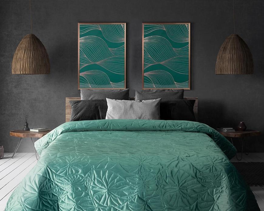 Narzuta o wymiarach 280x260 cm to nie tylko praktyczny element, ale także piękna ozdoba, która wnosi do Twojego wnętrza delikatność i urok. Jej szałwiowy kolor oraz kwiecisty wzór nadają pomieszczeniu świeżości i elegancji.
