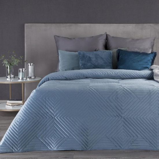 Narzuta o imponujących wymiarach 220x240 cm to ekskluzywny dodatek, który wniesie do Twojej sypialni wyjątkową elegancję i komfort. Niebieski kolor doda pomieszczeniu harmonii i luksusowego wyglądu.
