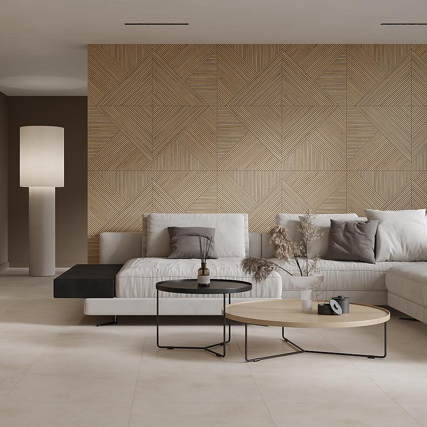 Duży format płytki umożliwia tworzenie jednolitych, harmonijnych powierzchni, które optycznie powiększają przestrzeń, jednocześnie podkreślając naturalny charakter podłogi lub ściany.
