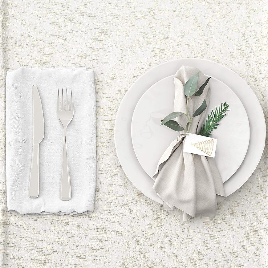 Obrus do prania i prasowania – materiał można prać w temperaturze 30˚C, a prasowanie sprawia, że zawsze prezentuje się nienagannie. Jego uniwersalny biały kolor z subtelnym złotym akcentem dodaje elegancji każdemu stołowi, idealnie sprawdzając się podczas codziennych posiłków, jak i wyjątkowych okazji.