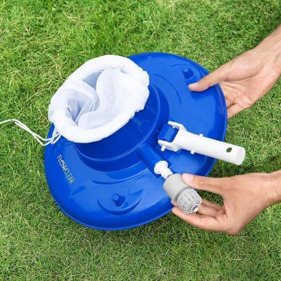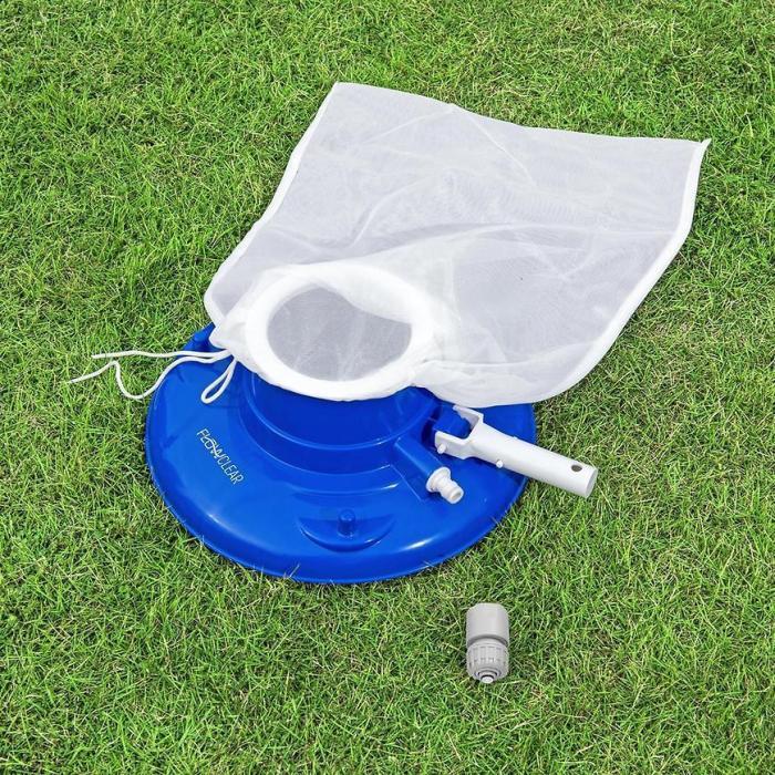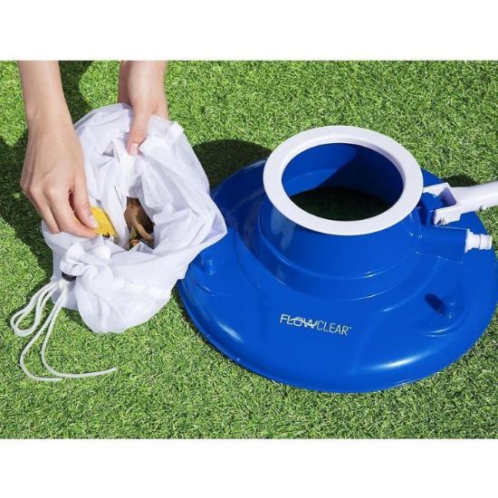 Odkurzacz Flowclear AquaSuction™ do liści jest łatwy w obsłudze wystarczy podłączyć wąż ogrodowy i drążek (brak w zestawie), aby szybko zebrać wszystkie nieznośne liście i zanieczyszczenia. Worek posiada blokadę, więc nie odczepi się od odkurzacza.