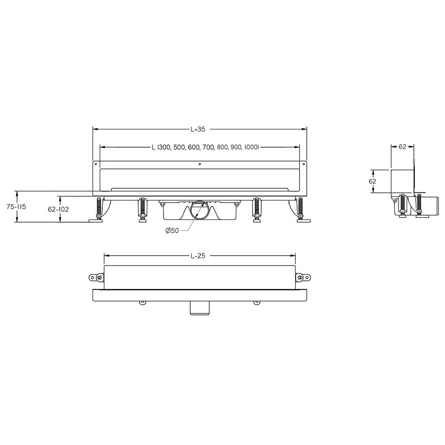 Długość 475–535 mm i szerokość 62 mm pozwalają na efektywne odprowadzanie wody przy maksymalnym przepływie 56 l/min. Wysokość zabudowy 62 mm umożliwia wygodny montaż w różnych typach podłóg, a waga 2,2 kg zapewnia stabilność całego systemu.