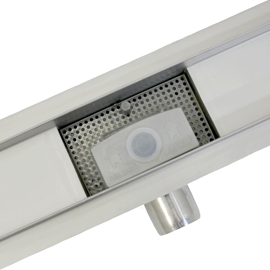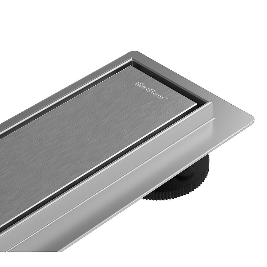Odwodnienie liniowe MERFLOW 500 w eleganckim stalowym wykończeniu to nowoczesne i funkcjonalne rozwiązanie do stref prysznicowych bez brodzika. Wykonane z wysokiej jakości stali nierdzewnej, charakteryzuje się solidną konstrukcją o wysokości zabudowy 54 mm i szerokości 70–110 mm, co pozwala na dopasowanie do różnych aranżacji łazienki. Model wyposażono w odwracalny stalowy ruszt oraz kołnierz w zestawie, ułatwiając montaż i zapewniając estetyczne wykończenie. Odpływ poziomy o średnicy 40/50 mm umożliwia wydajne odprowadzanie wody z maksymalnym przepływem do 0,6 l/s. Dzięki funkcji 2w1 umożliwiającej zabudowę płytką lub użycie maskownicy, odwodnienie dyskretnie i elegancko wkomponowuje się w podłogę, łącząc nowoczesny design z pełną funkcjonalnością. Całkowita waga 2,2 kg zapewnia stabilność, trwałość i komfort codziennego użytkowania.