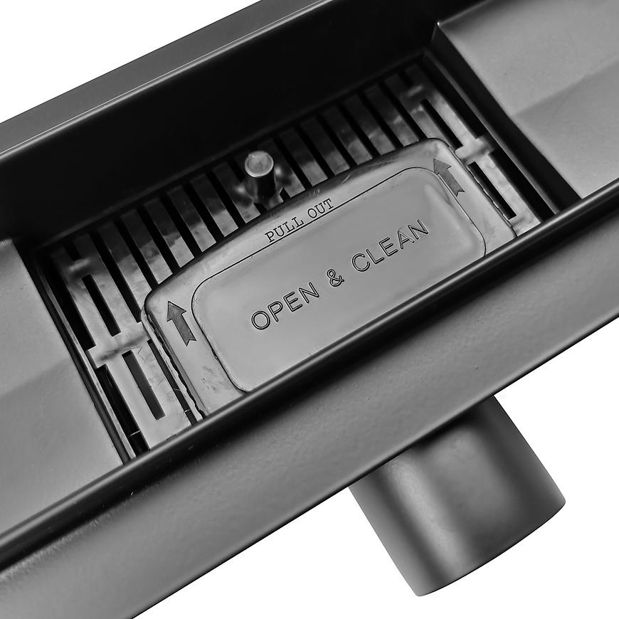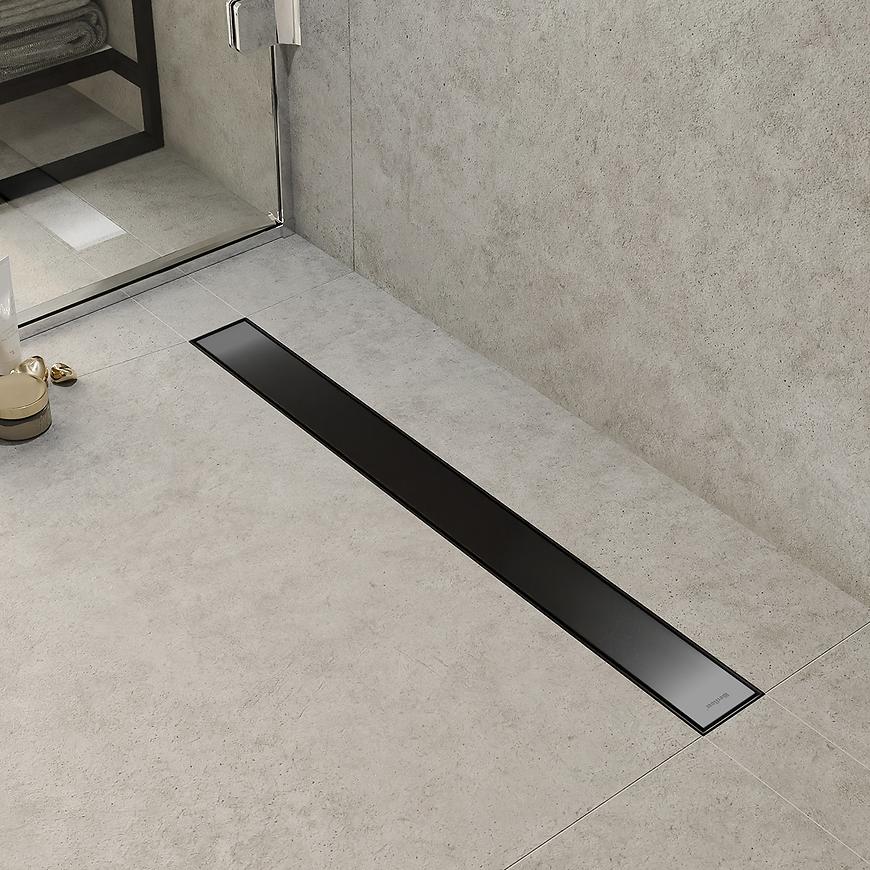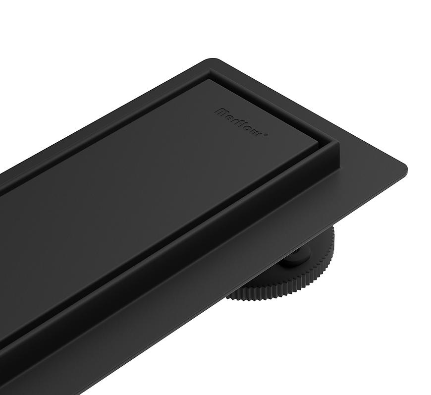Odwodnienie liniowe MERFLOW 1000 w eleganckim czarnym macie to wszechstronne i nowoczesne rozwiązanie do stref prysznicowych bez brodzika. Wykonane z wysokiej jakości stali nierdzewnej, charakteryzuje się solidną konstrukcją o wysokości zabudowy 54 mm i szerokości 70–110 mm, co pozwala na dopasowanie do różnych projektów łazienek. Model wyposażono w odwracalny stalowy ruszt oraz kołnierz w zestawie, co ułatwia montaż i gwarantuje estetyczne wykończenie. Odpływ poziomy o średnicy 40/50 mm umożliwia wydajne odprowadzanie wody z maksymalnym przepływem do 0,6 l/s. Dzięki funkcji 2w1, umożliwiającej zabudowę płytką lub użycie maskownicy, odwodnienie MERFLOW 1000 pozwala dyskretnie i elegancko wkomponować się w podłogę, łącząc nowoczesny design z pełną funkcjonalnością. Całkowita waga 3,7 kg zapewnia trwałość i stabilność podczas codziennego użytkowania.