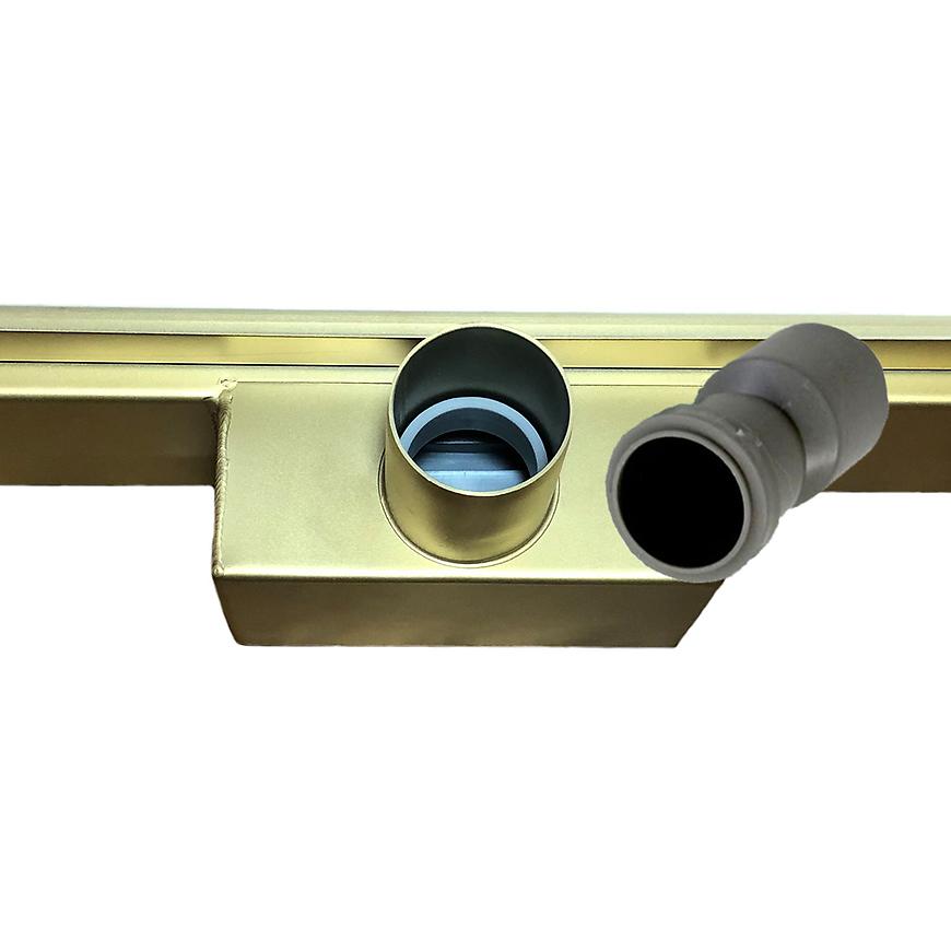 Odwodnienie liniowe MERFLOW 1000 w eleganckim złotym szczotkowanym wykończeniu to nowoczesne i wszechstronne rozwiązanie do stref prysznicowych bez brodzika. Wykonane z wysokiej jakości stali nierdzewnej, charakteryzuje się solidną konstrukcją o wysokości zabudowy 54 mm i szerokości 70–110 mm, dopasowując się do różnorodnych projektów łazienek. Model posiada odwracalny stalowy ruszt oraz kołnierz w zestawie, co ułatwia montaż i zapewnia estetyczne, luksusowe wykończenie. Odpływ poziomy o średnicy 40/50 mm umożliwia wydajne odprowadzanie wody z maksymalnym przepływem do 0,6 l/s. Funkcja 2w1 pozwala na zabudowę płytką lub zastosowanie maskownicy, dzięki czemu odwodnienie dyskretnie wkomponowuje się w podłogę, łącząc elegancki design z pełną funkcjonalnością. Całkowita waga 3,7 kg gwarantuje stabilność, trwałość i komfort codziennego użytkowania.