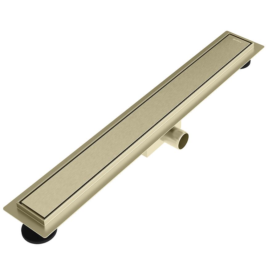 Odwodnienie liniowe SIEME 900 w eleganckim złotym szczotkowanym wykończeniu to nowoczesne i funkcjonalne rozwiązanie do stref prysznicowych bez brodzika. Wykonane z wysokiej jakości stali nierdzewnej, charakteryzuje się solidną konstrukcją o wysokości zabudowy 54 mm i szerokości 70–110 mm, co pozwala na dopasowanie do różnych aranżacji łazienki. Model posiada odwracalny stalowy ruszt oraz kołnierz w zestawie, ułatwiając montaż i zapewniając estetyczne, luksusowe wykończenie. Odpływ poziomy o średnicy 40/50 mm gwarantuje wydajne odprowadzanie wody z maksymalnym przepływem do 0,6 l/s. Funkcja 2w1 umożliwia zabudowę płytką lub zastosowanie maskownicy, dzięki czemu odwodnienie dyskretnie wkomponowuje się w podłogę, łącząc elegancki design z pełną funkcjonalnością. Całkowita waga 3,4 kg zapewnia stabilność, trwałość i komfort codziennego użytkowania.