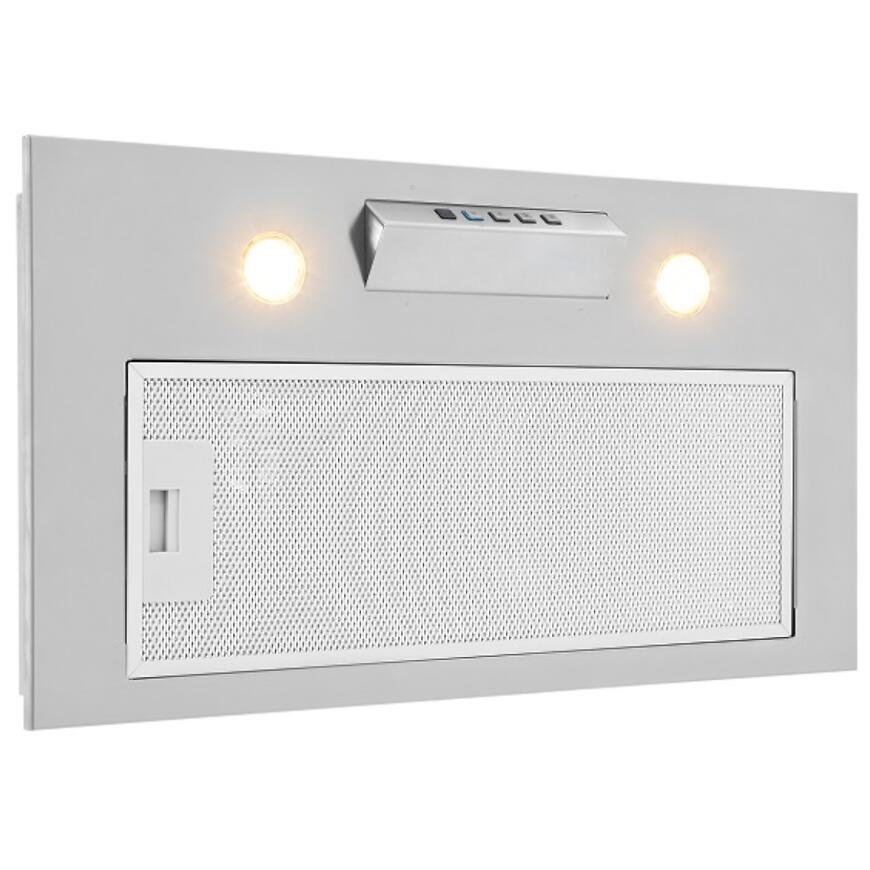 Charakteryzuje się maksymalną wydajnością 414 m³/h przy trzech prędkościach. Działa zarówno jako wyciąg, jak i pochłaniacz, sterowany elektronicznie. Oświetlenie zapewniają dwie diody LED. Moc całkowita wynosi 106 W, a silnika 102 W. Poziom hałasu mieści się w zakresie 44–68 dB, a klasa efektywności energetycznej to D. Średnica przewodu wentylacyjnego wynosi 150/120 mm, a waga urządzenia to 6,2 kg.