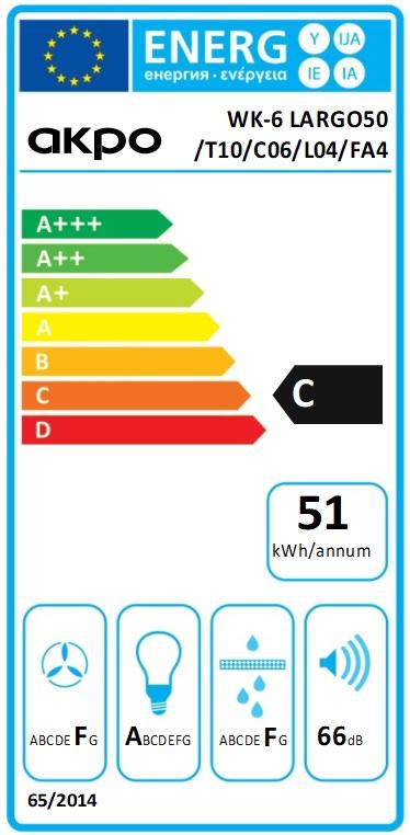 Okap WK-6 Largo 50 inox to elegancki, dekoracyjny model w klasycznym stylu, który idealnie sprawdzi się w kuchniach ceniących prostotę i funkcjonalność. Wykonany z aluminium i szkła w kolorze inox, prezentuje się nowocześnie i solidnie. Jego wymiary to 50 cm szerokości, 48 cm wysokości i 50 cm głębokości, przy wadze 12,26 kg. Wyposażony jest w aluminiowy filtr przeciwtłuszczowy z możliwością zastosowania filtra węglowego, co umożliwia pracę zarówno w trybie wyciągu, jak i pochłaniacza. Silnik o mocy 140 W zapewnia maksymalną wydajność 447 m³/h, a pięciostopniowa regulacja prędkości pozwala dopasować intensywność działania do aktualnych potrzeb. Urządzenie pracuje w zakresie głośności 53–66 dB i jest wyposażone w energooszczędne oświetlenie LED, które skutecznie oświetla płytę kuchenną. Maksymalna wysokość zewnętrzna okapu wynosi 1000 mm. Model ten należy do serii Largo, posiada elektroniczne sterowanie i klasę energetyczną C.