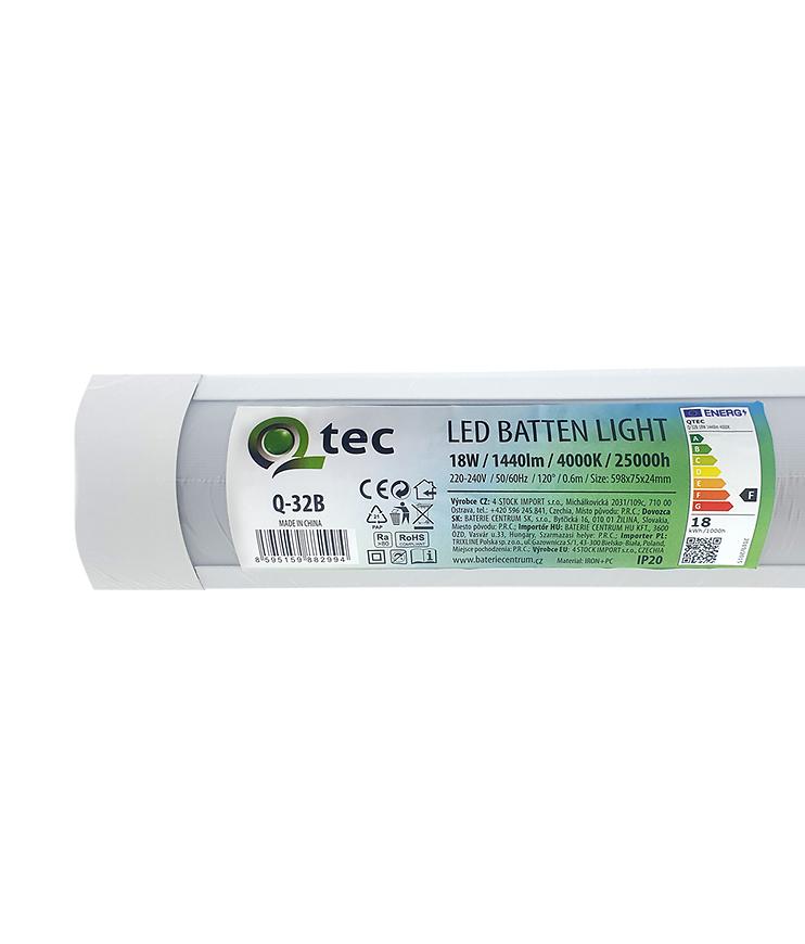 Oprawa Batten LED Q-32B o mocy 18W emituje neutralne białe światło (4000K), zapewniając równomierne oświetlenie w pomieszczeniach. Posiada liniowy kształt i eleganckie białe wykończenie. Wykonana z metalu i tworzywa sztucznego, odporna i trwała, idealna do montażu sufitowego lub ściennego. Produkt nieprzyciemnialny i bez możliwości zmiany kierunku światła.