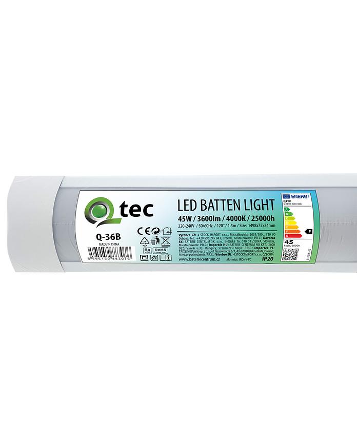 Oprawa Batten LED Q-36B o mocy 45W zapewnia neutralne białe światło (4000K), idealne do równomiernego oświetlenia pomieszczeń. Liniowy kształt i białe wykończenie sprawiają, że oprawa pasuje do nowoczesnych wnętrz. Wykonana z metalu i tworzywa sztucznego, solidna i trwała. Produkt nieprzyciemnialny i bez możliwości zmiany kierunku świecenia.