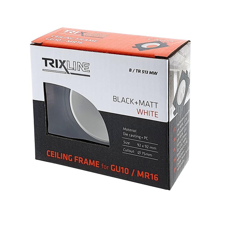 Oprawa sufitowa TR 513 MW to stylowa i funkcjonalna oprawa w nowoczesnym połączeniu czerni i bieli. Wykonana z wytrzymałego aluminium i tworzywa PC, ma okrągły kształt oraz kompaktowe wymiary 8,5 × 8,5 cm, co ułatwia jej montaż w różnych pomieszczeniach. Przeznaczona do wymiennych źródeł światła GU10/MR16, pozwala na regulację kierunku oświetlenia, dzięki czemu można precyzyjnie skierować światło tam, gdzie jest potrzebne. Klasa szczelności IP20 sprawia, że oprawa idealnie sprawdzi się w suchych wnętrzach, takich jak salon, sypialnia czy przedpokój.