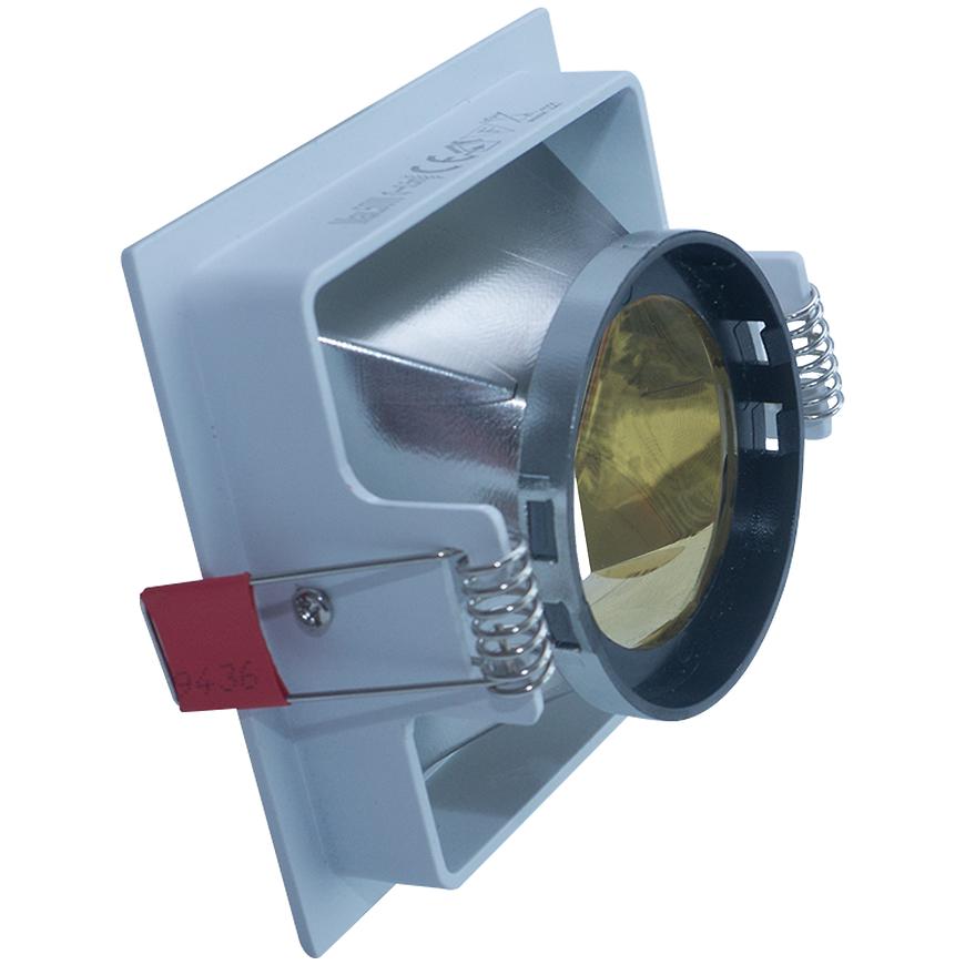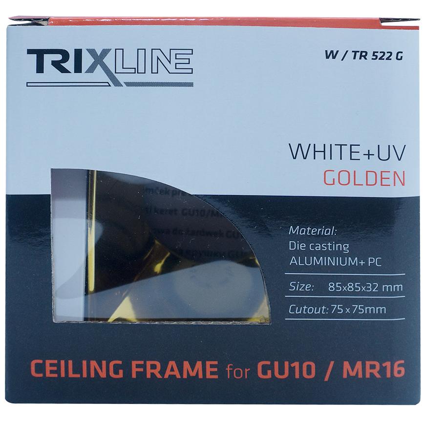 Oprawa sufitowa TR 522 G to stylowa, kwadratowa oprawa w kolorze białym z złotymi akcentami, wykonana z wytrzymałego aluminium i tworzywa PC. Jej wymiary – 8,5 cm szerokości i wysokości – sprawiają, że doskonale pasuje do różnych aranżacji wnętrz. Oprawa wyposażona jest w możliwość regulacji kierunku światła, co pozwala skierować iluminację tam, gdzie jest potrzebna. Przeznaczona do wymiennych źródeł światła GU10/MR16, z klasą szczelności IP20, idealnie sprawdzi się w suchych pomieszczeniach, takich jak salon, sypialnia czy korytarz.