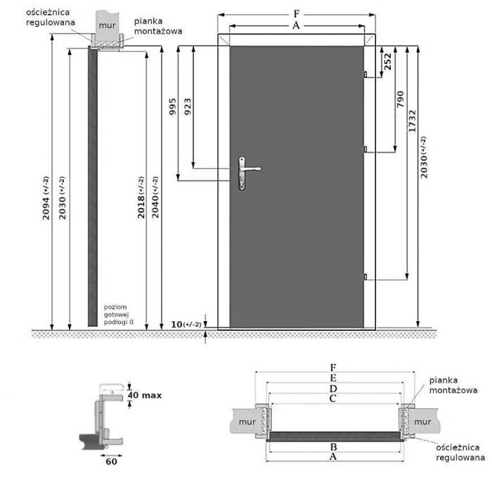 • Wysokość wewnętrzna ościeżnicy [mm]: