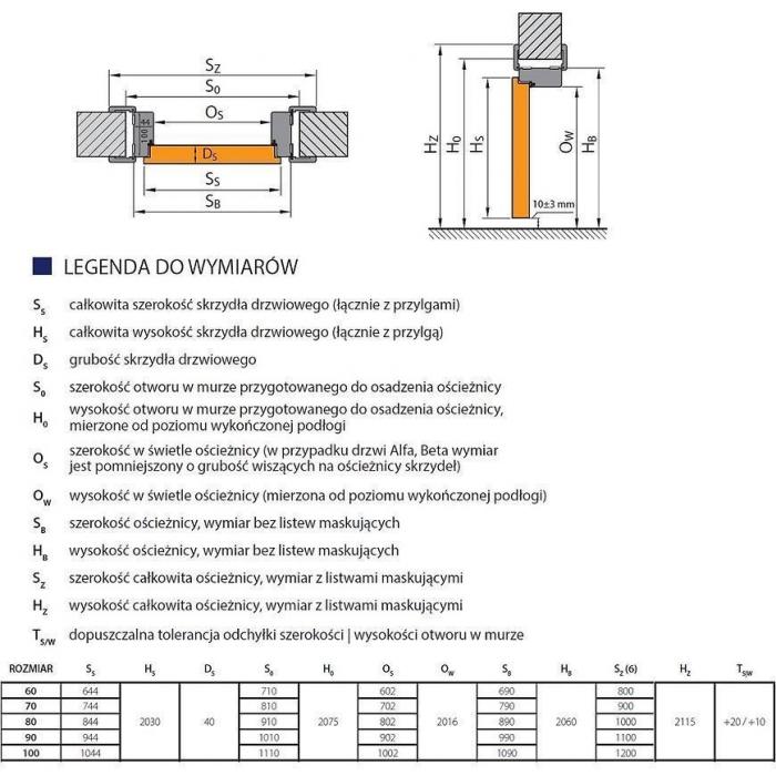 Wysokość wewnętrzna ościeżnicy [mm]: