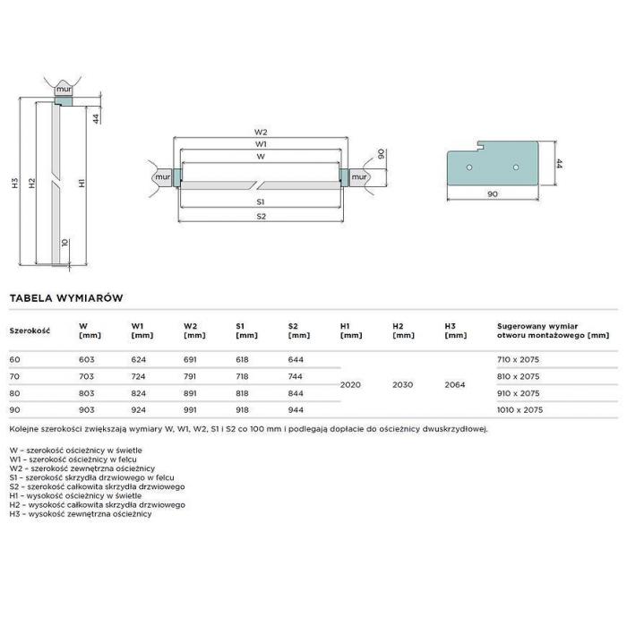 Szerokość zewnętrzna ościeżnicy [mm]: