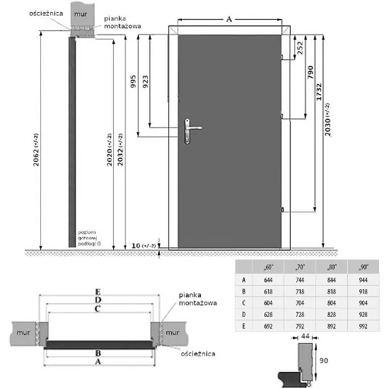 Szerokość wewnętrzna ościeżnicy [mm]:
