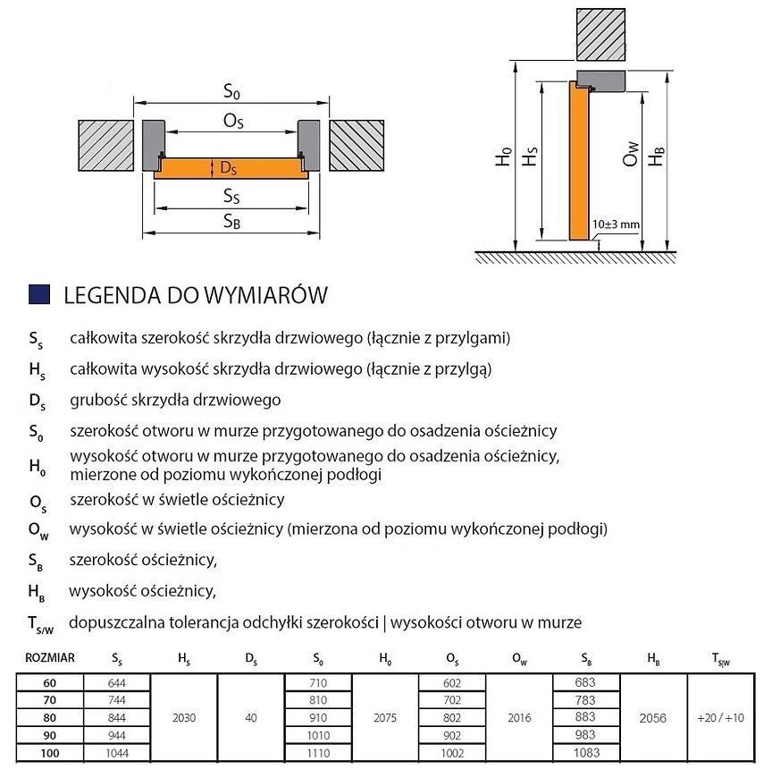 Ościeżnica została zaprojektowana dla drzwi wewnętrznych lewych o szerokości 80 cm. Wymiary ościeżnicy: