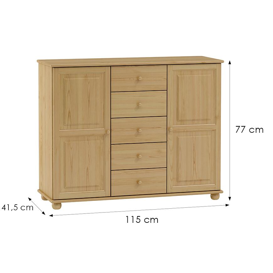 Komoda Oslo 2D3S łączy funkcjonalność z klasycznym, rustykalnym stylem. Jej wymiary 115 × 77 × 41,5 cm sprawiają, że doskonale pasuje do salonu, sypialni czy przedpokoju, oferując wygodne miejsce do przechowywania odzieży, dokumentów czy dodatków.