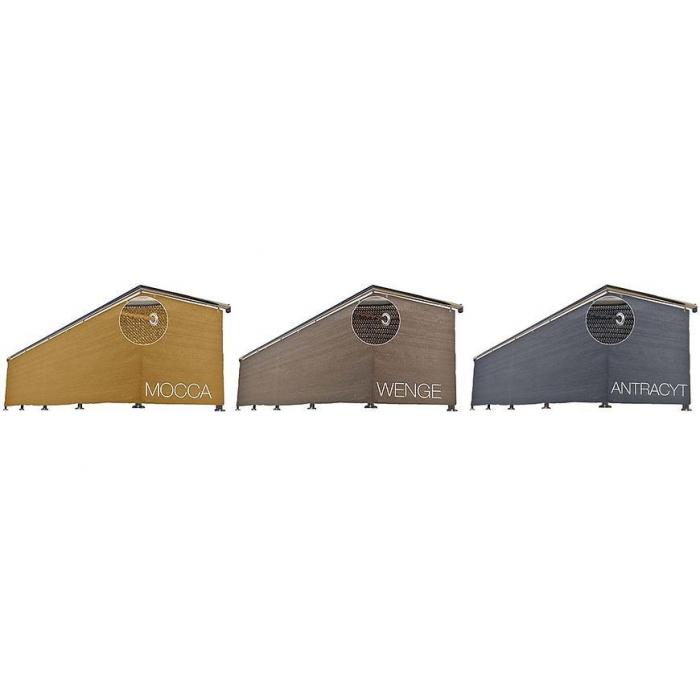 Osłona została wykonana z polietylenu, co chroni ją przed typowymi warunkami atmosferycznymi (pormieniowanie UV, mróz, wilgoć, wiatr oraz wysokie temperatury). Tkanina posiada dodatkowo mikro-otwory, które zapewniają swobodną cyrkulację powietrza.