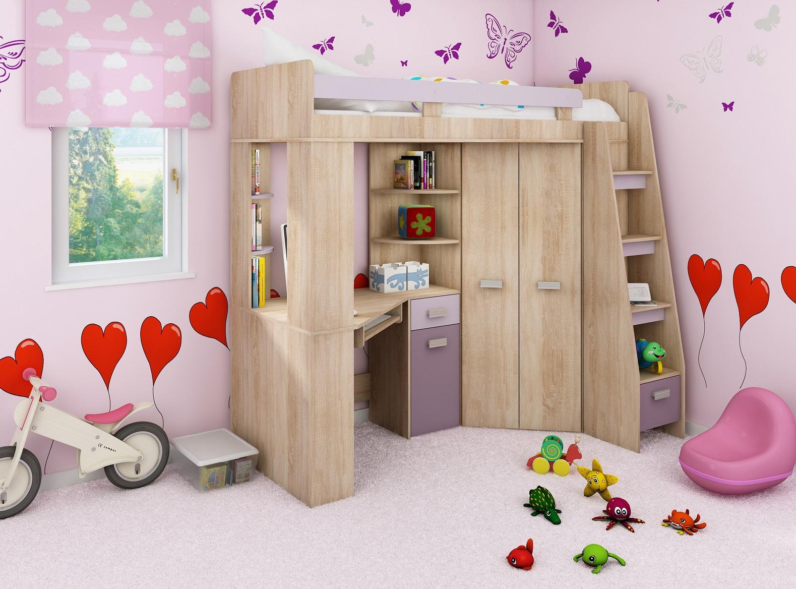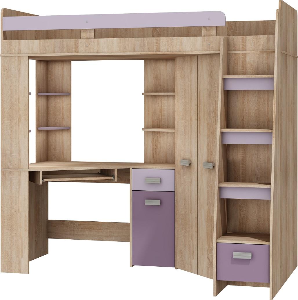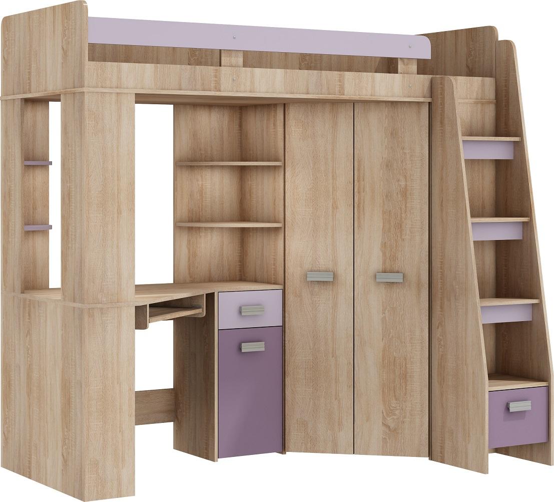 Pełnowymiarowe łóżko z powierzchnią spania 80x200. Praktyczne schody, które posiadają szufladę - znakomite rozwiązanie na przetrzymywanie skarbów naszych dzieci. Pojemna, narożna szafa z łatwym dostępem do wnętrza to mini garderoba, która w środku wyposażona jest w półkę na całości, pod spodem drążek i praktyczne półeczki z boku szafy. Półki znajdujące się w rogach nad biurkiem to znakomite wykorzystanie wolnej przestrzeni. Biurko narożne to niezawodny moduł w pokoju dziecięcym - posłuży nam jako miejsce do odrabiania lekcji, zabawy, także do korzystania z komputera. Wysuwana półka na klawiaturę, która od tej pory będzie miała swoje miejsce. Udoskonaleniem naszej Antresoli jest możliwość dokupienia oświetlenia LED. Regał, który składa się z dwóch części: pierwsza to praktyczna szuflada, drugą to półka, która schowana jest za drzwiczkami.