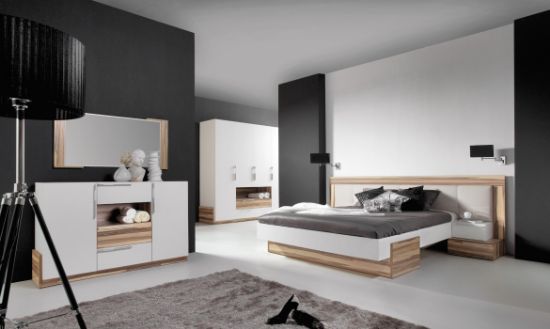 Mebel wykonany jest z płyty wiórowej laminowanej w kolorze czarny/orzech. Cena nie zawiera szafek nocnych. Łóżko nie posiada materaca w zestawie.
