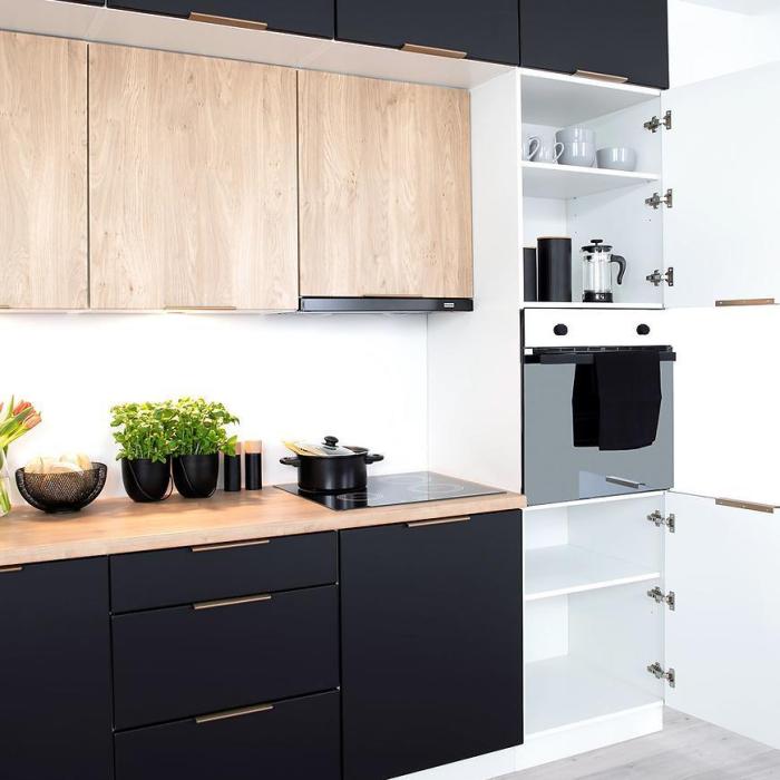 Charakterystyczną cechą kolekcji Denis jest jej uniwersalność. Meble dostępne są w czarnym dekorze, co nadaje kuchni charakteru i elegancji. Zarówno fronty, jak i korpusy mebli posiadają matowe wykończenie, co nadaje całości subtelności i nowoczesności. Kolekcja Denis to doskonałe połączenie stylu nowoczesnego z klasycznym, dzięki czemu pasuje zarówno do nowoczesnych, minimalistycznych przestrzeni, jak i bardziej tradycyjnych wnętrz.