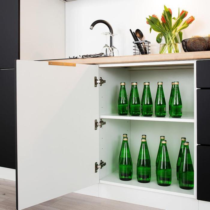 - Szafki kuchenne stojące z drzwiami uchylnymi: Idealne do przechowywania naczyń i produktów spożywczych, drzwi uchylnego zapewniają łatwy dostęp do zawartości.