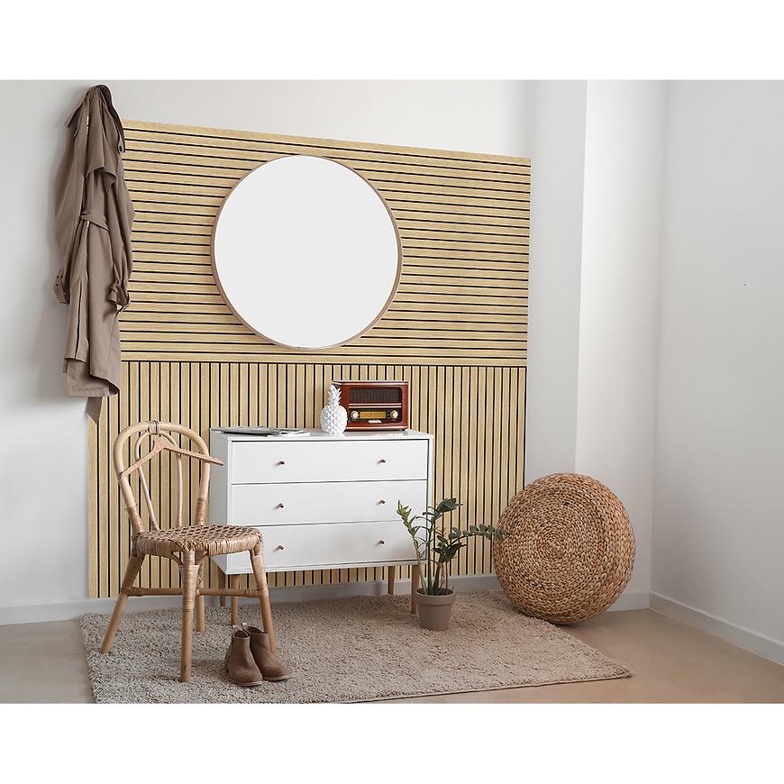 Panel frezowany Lines dąb o wymiarach 90x30 cm to wyjątkowe rozwiązanie do dekoracji ścian, nadając im nowoczesny i dynamiczny charakter. Montaż panelu jest prosty i skuteczny, opierając się na przyklejaniu do ściany. Wykonany z MDF, materiału znakomicie łączącego stabilność i lekkość, panel jest łatwy w obróbce, co sprawia, że idealnie wpisuje się w różne aranżacje wnętrz.