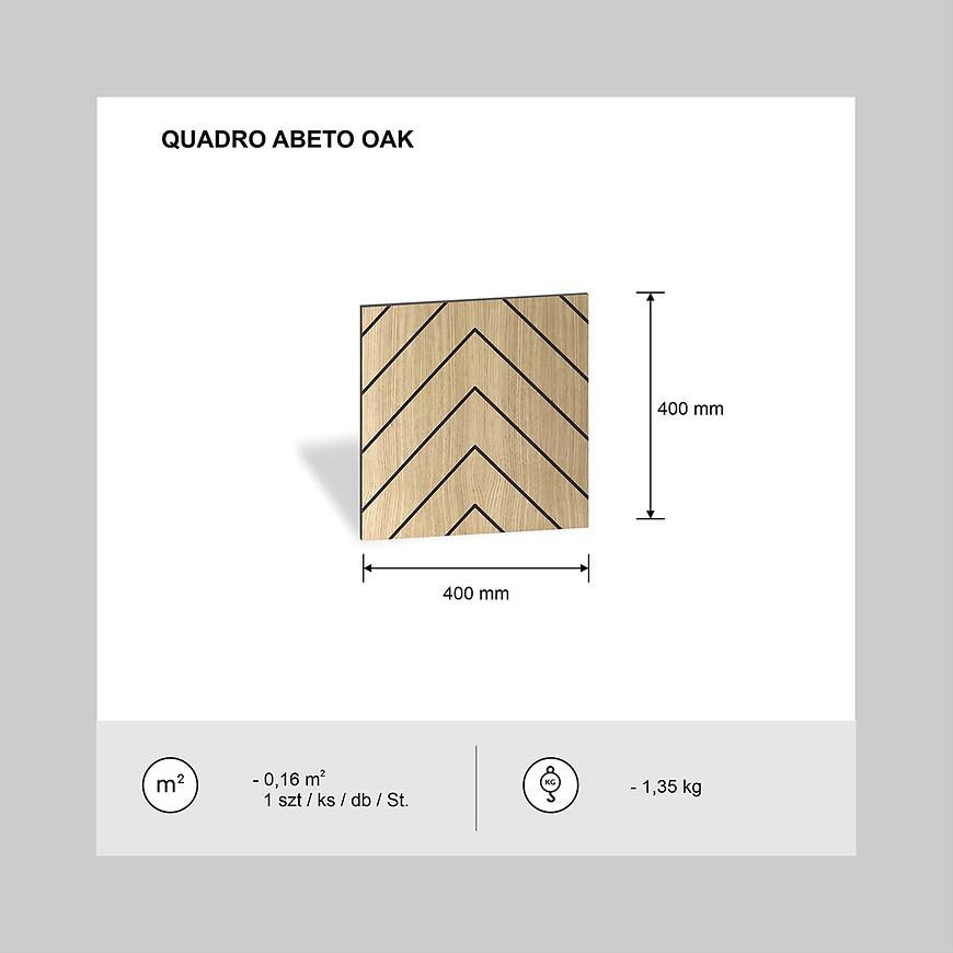 Montaż panelu Quadro Abeto jest niezwykle prosty – odbywa się poprzez przyklejenie do ściany. Dzięki temu można szybko i łatwo odmienić wystrój wnętrza, dodając mu nowoczesności i oryginalności. Gama kolorystyczna panelu utrzymana jest w naturalnych tonacjach, co sprawia, że doskonale komponuje się z różnymi stylami aranżacyjnymi.