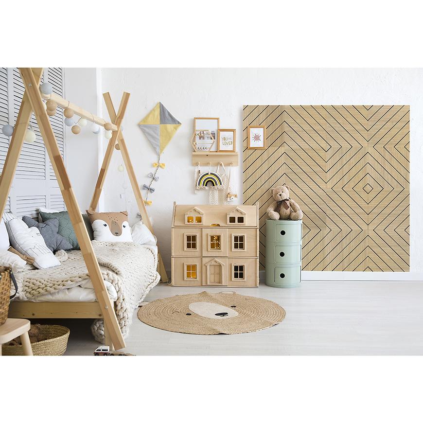 Dzięki swojemu frezowanemu wzorowi w formie diagonalnych linii, panel ten tworzy interesujący efekt optyczny, dodając przestrzeni głębi i dynamiki. Jego naturalna gama kolorystyczna sprawia, że doskonale komponuje się z różnymi stylami aranżacyjnymi, dodając wnętrzu subtelności i elegancji.