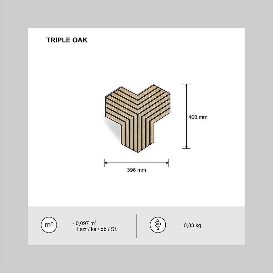 Materiał MDF gwarantuje solidność i odporność na uszkodzenia, co sprawia, że panel Triple nie tylko pełni funkcję dekoracyjną, ale także jest praktycznym elementem ozdobnym. Gama kolorystyczna panelu utrzymana jest w naturalnych tonacjach, co sprawia, że doskonale współgra z różnymi stylami aranżacyjnymi.