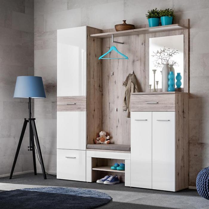 Panel Gustavo TYPD w wybarwieniu dąb Wellington/biały to funkcjonalny i estetyczny element wyposażenia wnętrza, który łączy klasyczny design z praktycznym zastosowaniem. Produkt pozwala na wygodne przechowywanie odzieży, toreb, szalików oraz innych akcesoriów codziennego użytku, utrzymując porządek w przedpokoju lub garderobie.