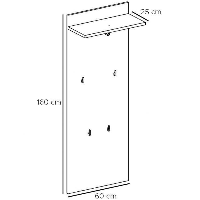 Panel Gustavo o szerokości 60 cm, wysokości 160 cm i głębokości 25 cm zapewnia komfortowe odwieszanie odzieży codziennej. Produkt umożliwia utrzymanie porządku, jednocześnie oferując szybki dostęp do odwieszanych przedmiotów.