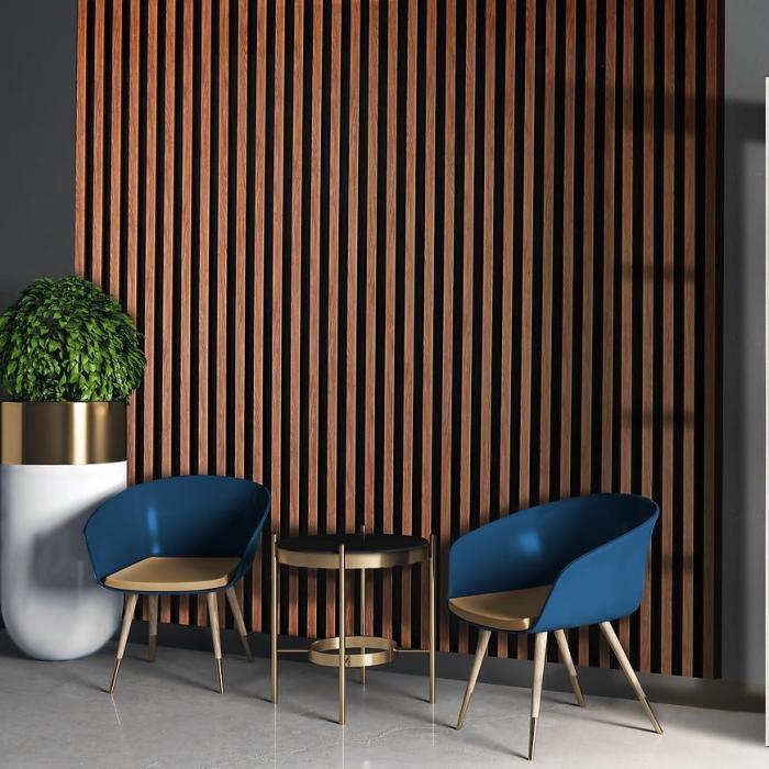 Panel lamelowy to doskonały element wykończenia pomieszczenia. Wprowadzi do wnętrza zarówno elegancję jak i nowoczesność. Panel dekoracyjny z lameli mdf opłaszczowanych folią w kolorze wotan na czarnej płycie HDF. Łatwo można go dociąć zarówno z długości jak i szerokości. Dzięki kolorystyce oraz ułożeniu, profile lamelowe powiększają wizualnie przestrzeń oraz tworzą lepszą akustykę wnętrza. Montaż jest bardzo prosty - montuje się na zakładkę na kleju montażowym bezpośrednio do ściany.