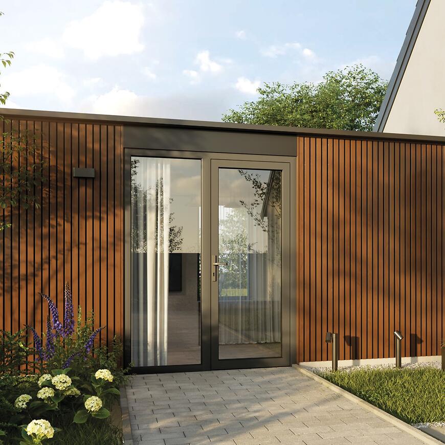 anel lamelowy Fronto V-BLACK Złoty Dąb to elegancki element elewacyjny wykonany z wytrzymałego PCV-U, łączący naturalny wygląd drewna z odpornością tworzywa sztucznego. Ciepły odcień złotego dębu nadaje elewacji przytulny i luksusowy charakter, idealnie komponując się z nowoczesnymi i klasycznymi aranżacjami budynków. Panel ma długość 2950 mm, szerokość całkowitą 288 mm i szerokość użytkową 250 mm, co pozwala na estetyczny montaż i jednolity efekt wizualny. Produkt z kolekcji V-Black waży 2,23 kg na sztukę. Panel Fronto V-BLACK Złoty Dąb łączy trwałość, łatwość montażu oraz efektowny wygląd drewna, zapewniając atrakcyjne i funkcjonalne wykończenie elewacji.