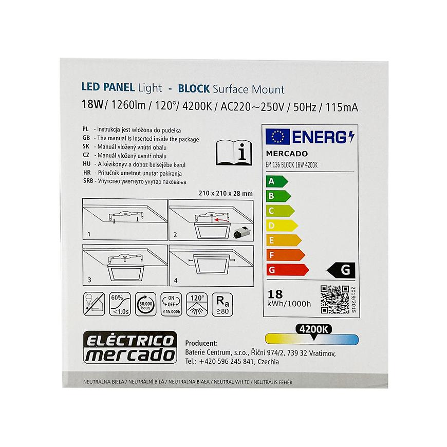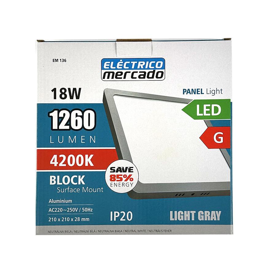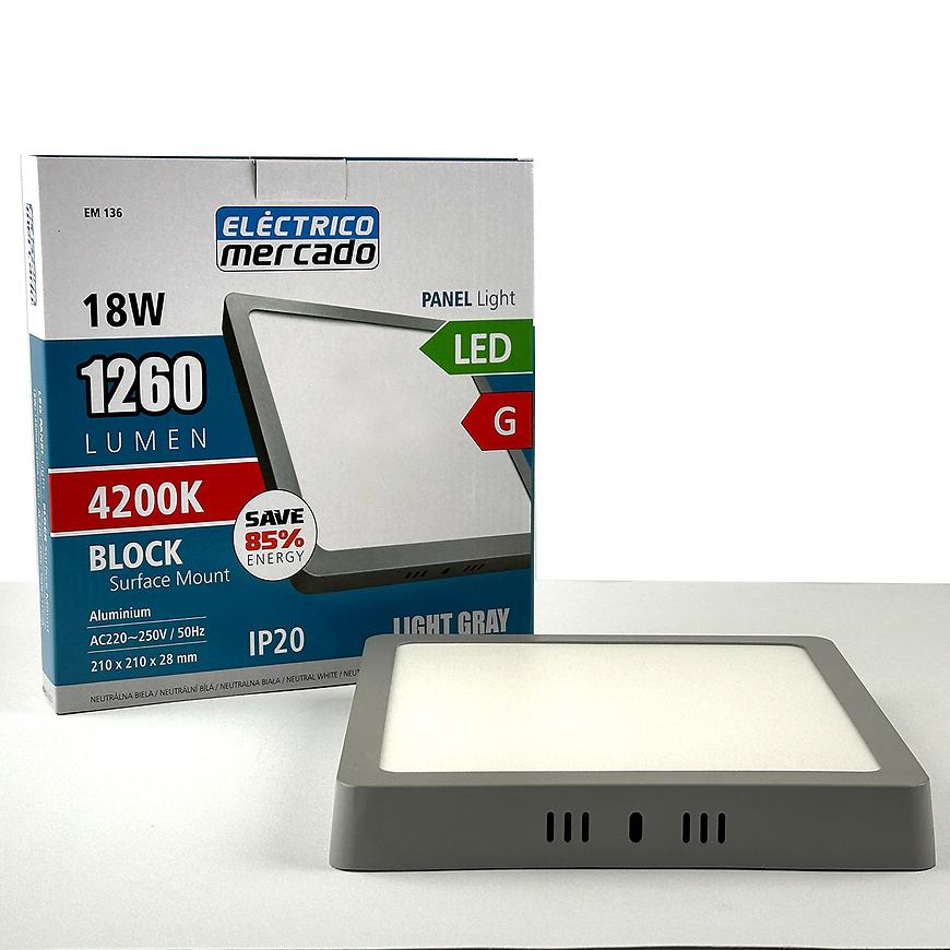 Panel LED BLOCK 18W 4200K Kwadrat Jasno szary