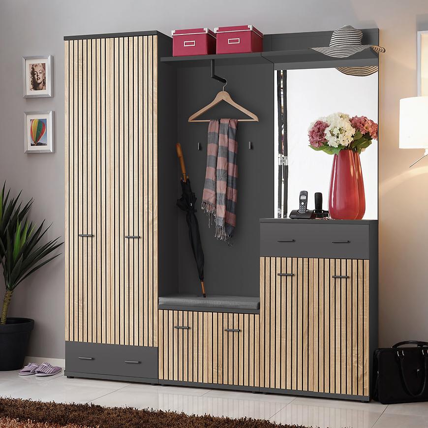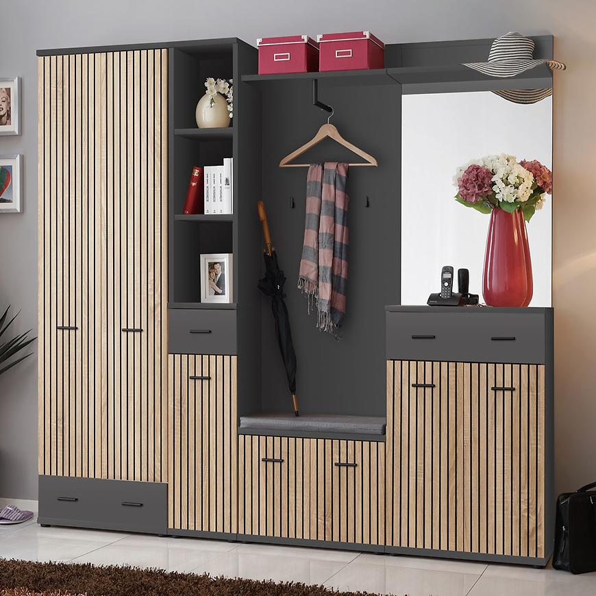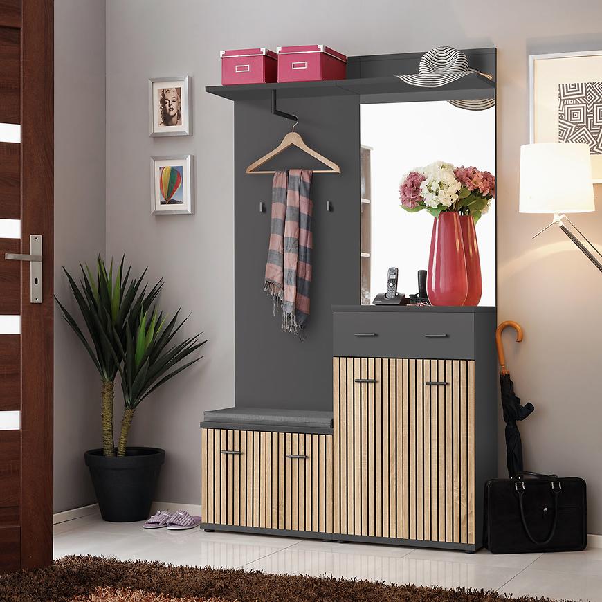 Jego minimalistyczny design sprawia, że panel Marco to doskonałe rozwiązanie do organizacji przestrzeni w Twoim domu. Kolor antracyt nadaje mu eleganckiego charakteru, który pasuje do różnych stylów aranżacji wnętrz.