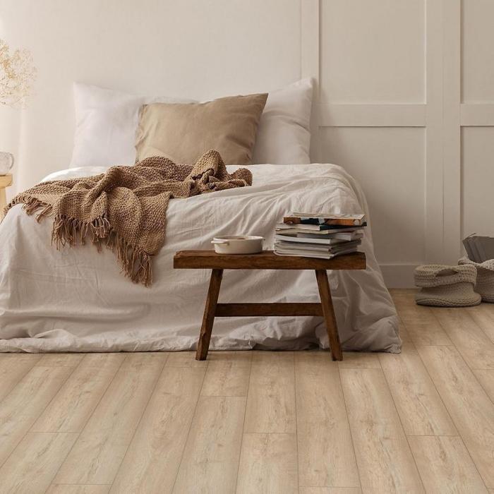 Panele podłogowe Dąb Pastelowy 8mm AC4 8279 świetnie sprawdzą się w takich pomieszczeniach jak np: pokój dzienny, pokój dziecięcy, przedpokój. Posiadają szybki click system przy montażu.