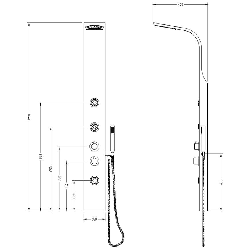 Panel prysznicowy o wysokości 155 cm i szerokości 18 cm to innowacyjne rozwiązanie, które sprawi, że Twoja łazienka zyska nowy wymiar komfortu i funkcjonalności. Dzięki montażowi naściennemu, panel doskonale łączy się z Twoją łazienkową aranżacją, nadając jej nowoczesny charakter.