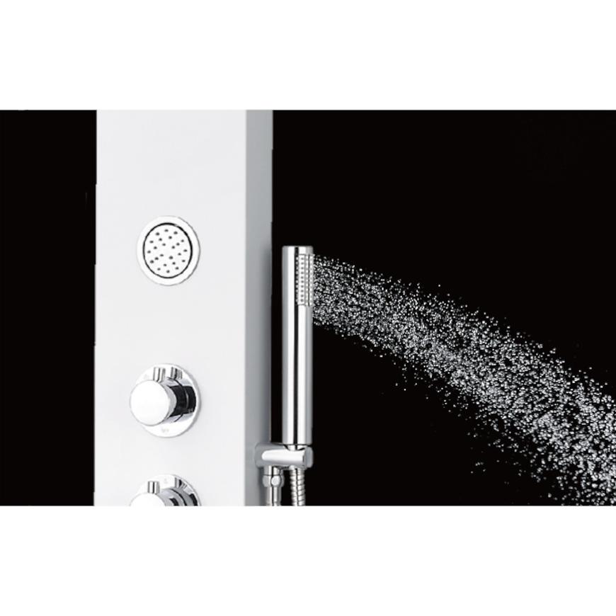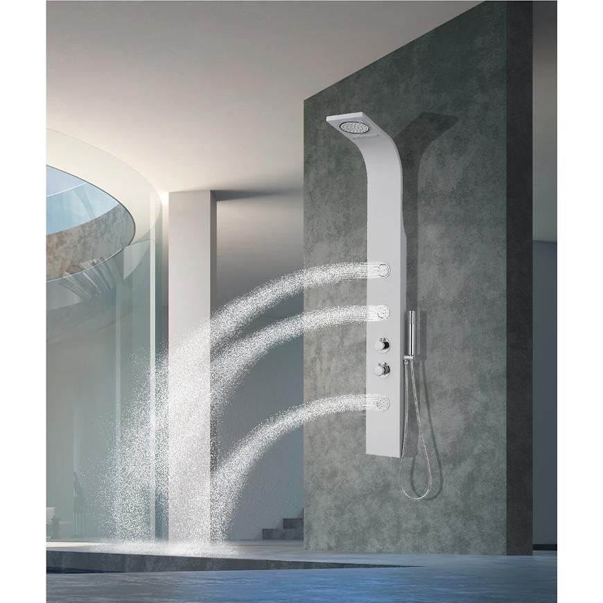 Ten panel prysznicowy to połączenie nowoczesnego designu, funkcjonalności i wygody, które uczynią Twoje kąpiele niezwykle przyjemnym doświadczeniem. Ciesz się relaksującym masażem, stałą temperaturą wody i deszczowym natryskiem, odkrywając nową jakość kąpieli dzięki temu eleganckiemu panelowi prysznicowemu w kolorze białym.