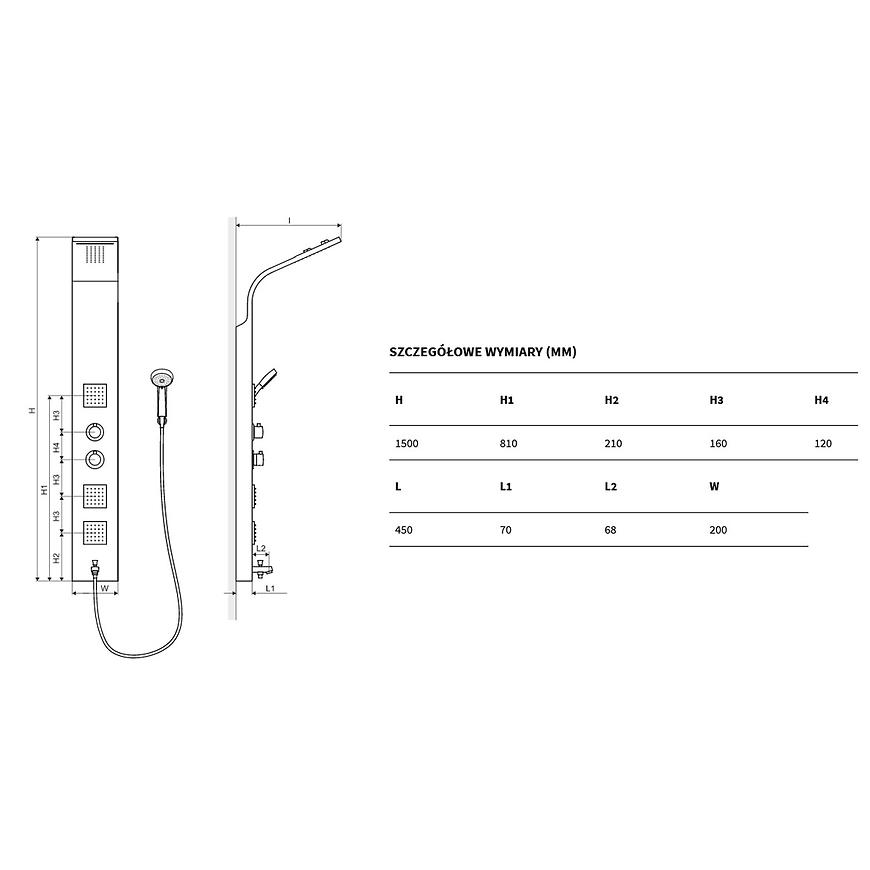 Niezwykle istotną cechą tego panelu jest jego łatwa instalacja. Wymaga jedynie podłączenia do źródła wody i umocowania na specjalnych zawieszkach. Co więcej, dzięki załączonym adapterom, istnieje możliwość montażu narożnego, co daje większą elastyczność w dostosowaniu panelu do indywidualnych potrzeb i rozmiaru przestrzeni prysznicowej.
