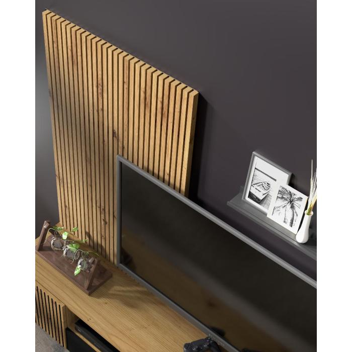 Panel ścienny z kolekcji Amel to doskonały element wykończenia pomieszczenia. Wprowadzi do wnętrza zarówno elegancję jak i nowoczesność. Panel ścienny wykonano z płyty MDF oraz grubej i wytrzymałej płyty HDF. Panele można układać i dopasowywać na wysokość oraz na szerokość. Montażu paneli najlepiej dokonać przy użyciu kleju montażowego dostosowanego do rodzaju ściany/podłoża. Kleju montażowego nie ma w zestawie.