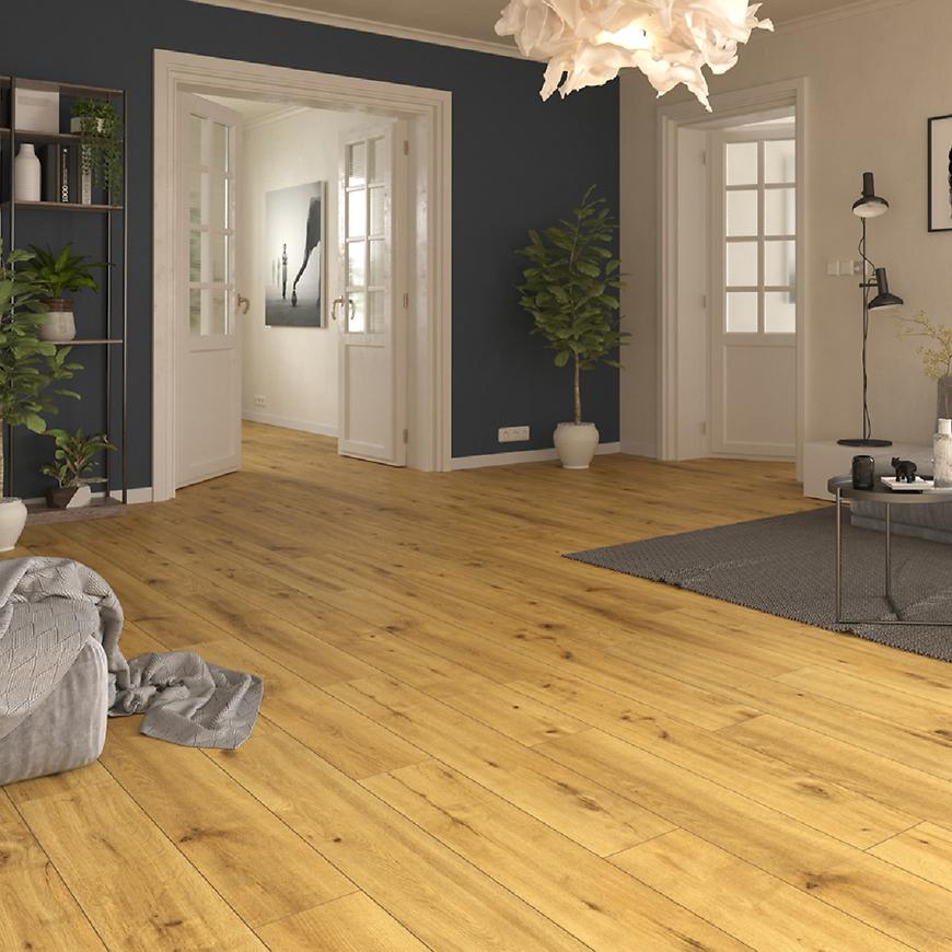 Deska o dekorze dąb z realistyczną, synchroniczną strukturą 3D i czterostronną fugą doskonale imituje naturalne drewno, wprowadzając do wnętrza ciepło i elegancję. Panel jest w 100% wodoodporny, odporny na promieniowanie UV, antystatyczny i antypoślizgowy, dzięki czemu sprawdzi się także w pomieszczeniach narażonych na wilgoć. System montażu EasyLoc oparty na szybkim click systemie 5G pozwala na prosty i bezpieczny montaż, również na ogrzewaniu podłogowym. Klasyfikacja ogniowa Bfl-s1 dodatkowo zwiększa bezpieczeństwo użytkowania. To trwała, ekologiczna i estetyczna podłoga dla nowoczesnych przestrzeni.