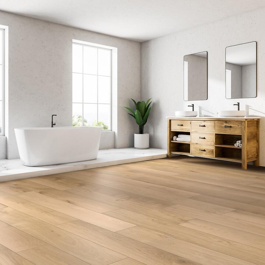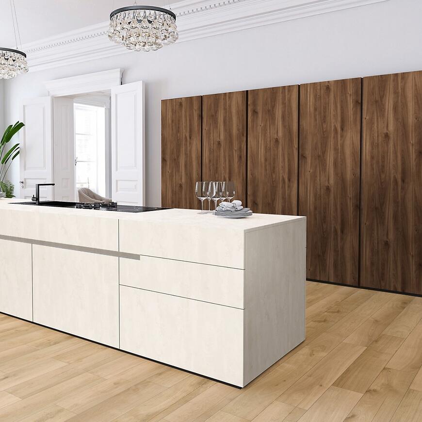 Podłoga ROCKO jest w pełni wodoodporna i przystosowana do ogrzewania podłogowego, co zwiększa komfort codziennego użytkowania. Jednolita, 1-lamelowa struktura z czterostronnym fazowaniem (V fuga) nadaje wnętrzu spójny i nowoczesny charakter, a system szybkiego montażu click 5G z typem zamka 1click2goPure umożliwia łatwą i stabilną instalację bez konieczności użycia kleju.