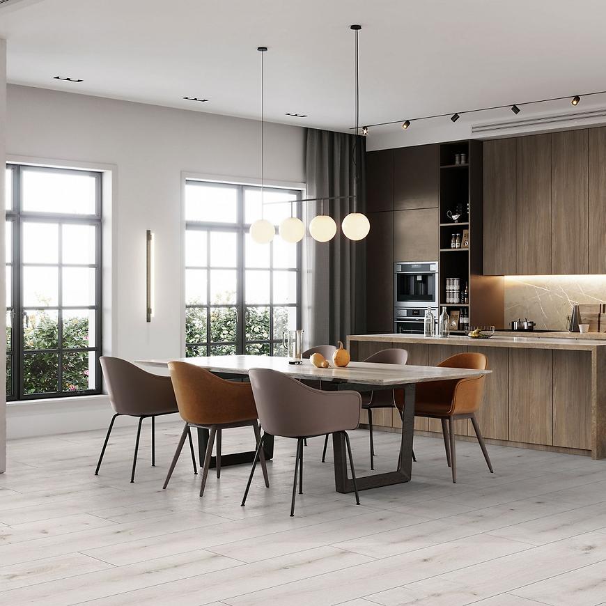 Panel winylowy SPC ROCKO White Poppy R129 5mm 23/34 z kolekcji ROCKO to trwałe i eleganckie rozwiązanie do wnętrz o intensywnym użytkowaniu, takich jak biura, korytarze czy kuchnie. Wykonany z twardego rdzenia ceramicznego SPC o grubości 5 mm, z szeroką deską o strukturze drewna i dekorze dąb, łączy estetykę z funkcjonalnością. Panel jest wodoodporny, antypoślizgowy, antystatyczny, przystosowany do ogrzewania podłogowego, z 4-stronnym fazowaniem (V Fuga) i szybkim click system 5G (1click2goPure). Opakowanie pokrywa 2,5 m², waga paneli wynosi 9,33 kg/m², a klasa użyteczności 34 zapewnia odporność na bardzo intensywne użytkowanie. Klasyfikacja ogniowa Bfl-s1 gwarantuje bezpieczeństwo, a jasny dekor nadaje wnętrzu nowoczesny i przestronny charakter.