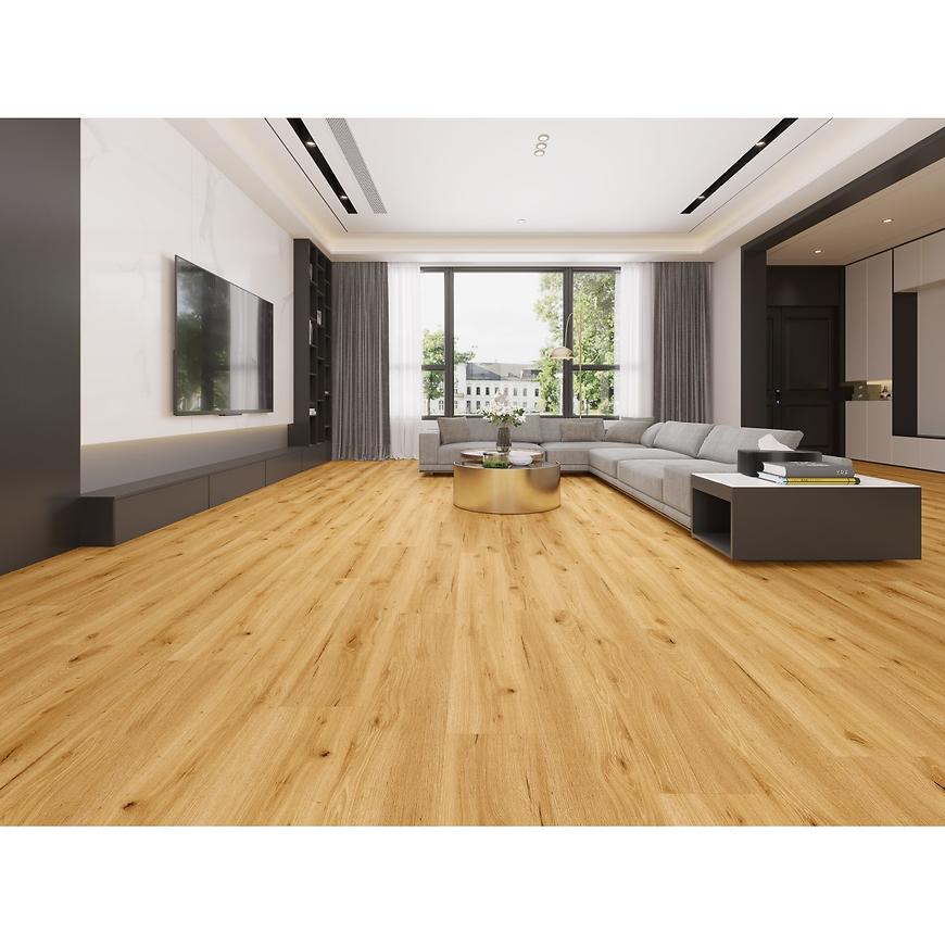 Naturalny dekor dębu i wyczuwalna struktura drewna nadają podłodze elegancki i realistyczny wygląd, który doskonale komponuje się z różnymi stylami wnętrz. Panel posiada mikro 4-stronną V-fugę oraz 1-lamelową konstrukcję, co dodatkowo podkreśla efekt drewnianej deski. Warstwa ścieralna 0,3 mm i klasa użyteczności 31 zapewniają trwałość w codziennym użytkowaniu, a system montażu typu click ułatwia szybkie i bezproblemowe układanie bez użycia kleju.